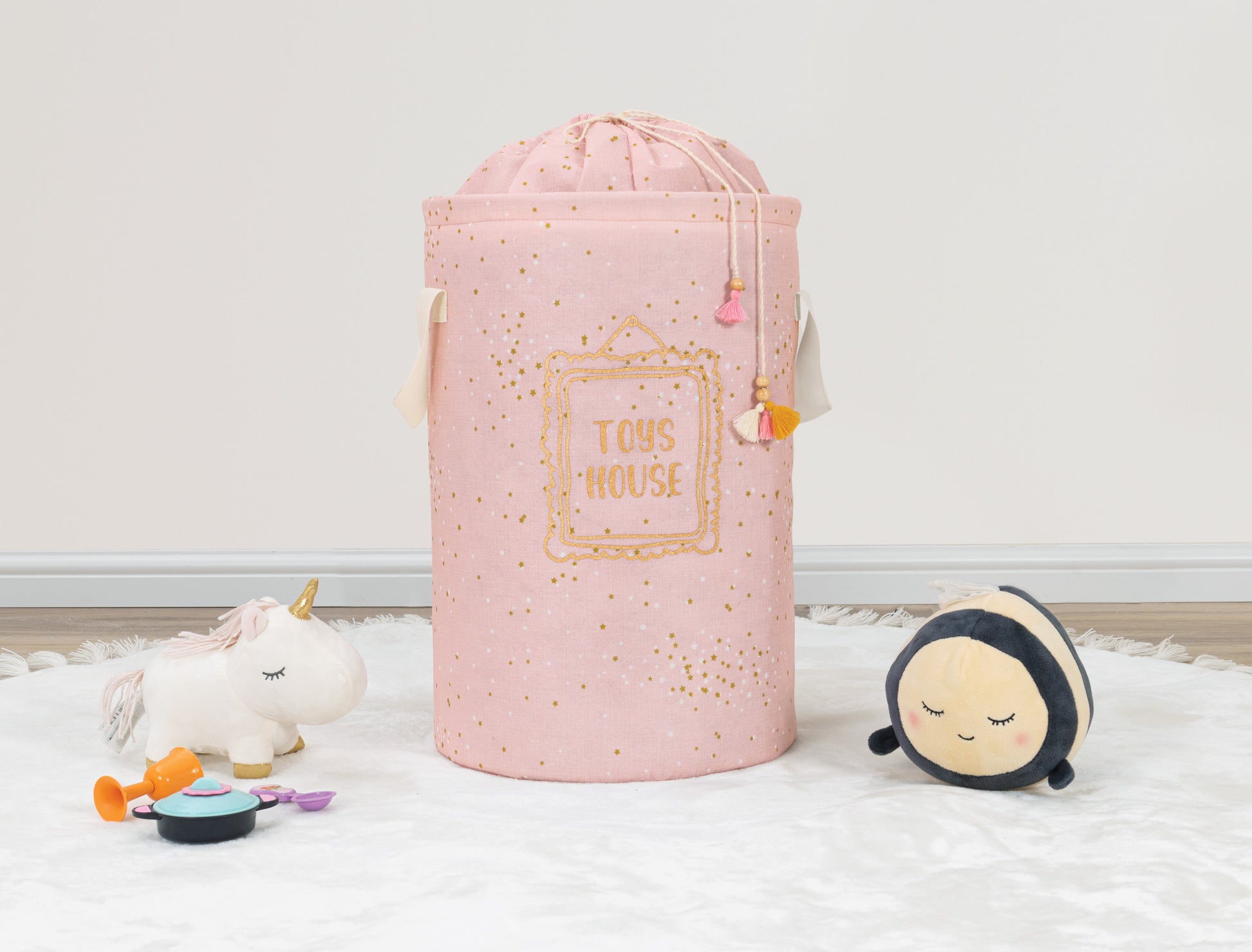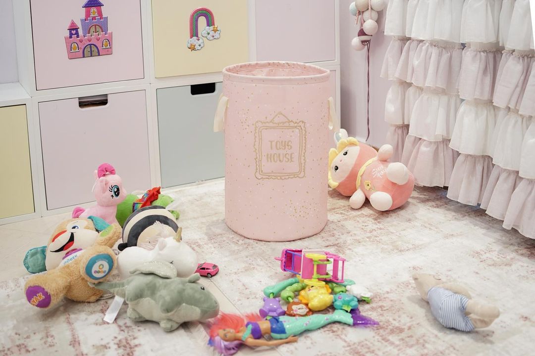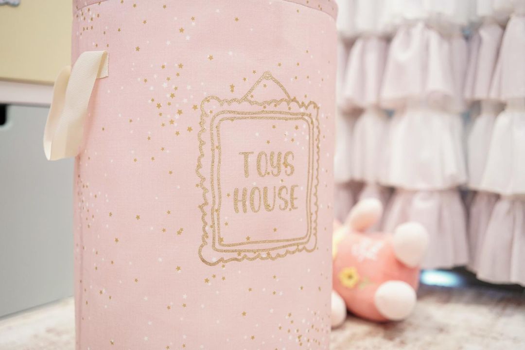 Okrugla korpa za igračke / prljav veš za bebe – Roze