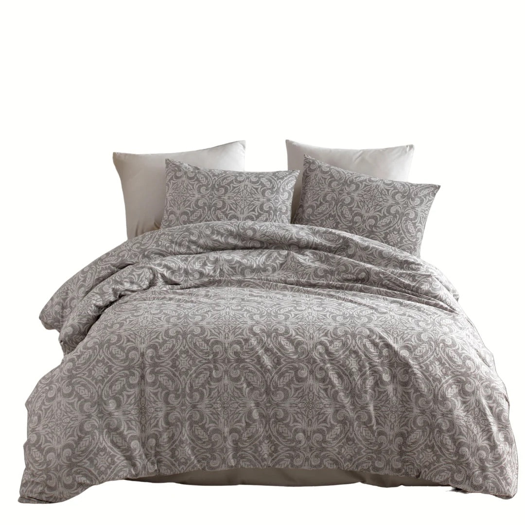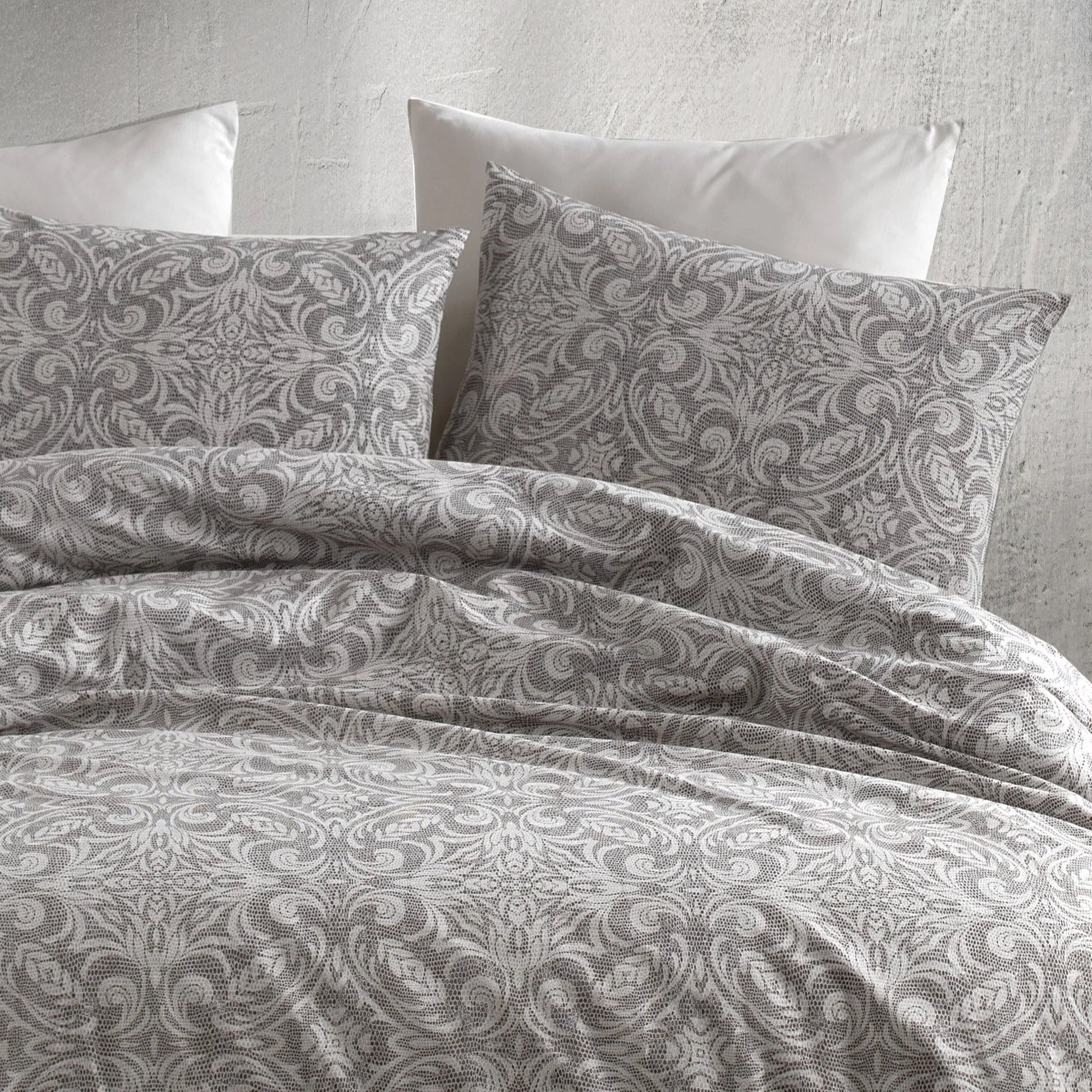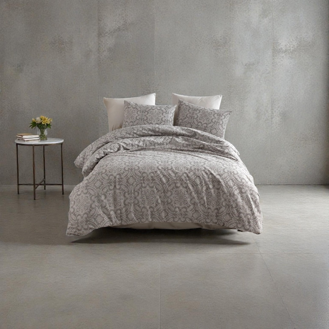 Posteljina za bračni ležaj – Sivi Barok (100% pamuk)