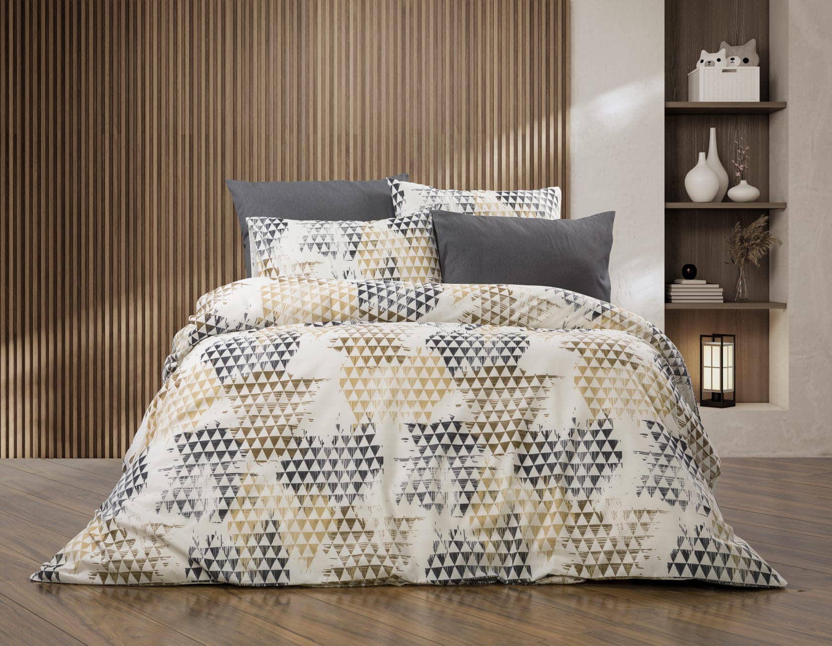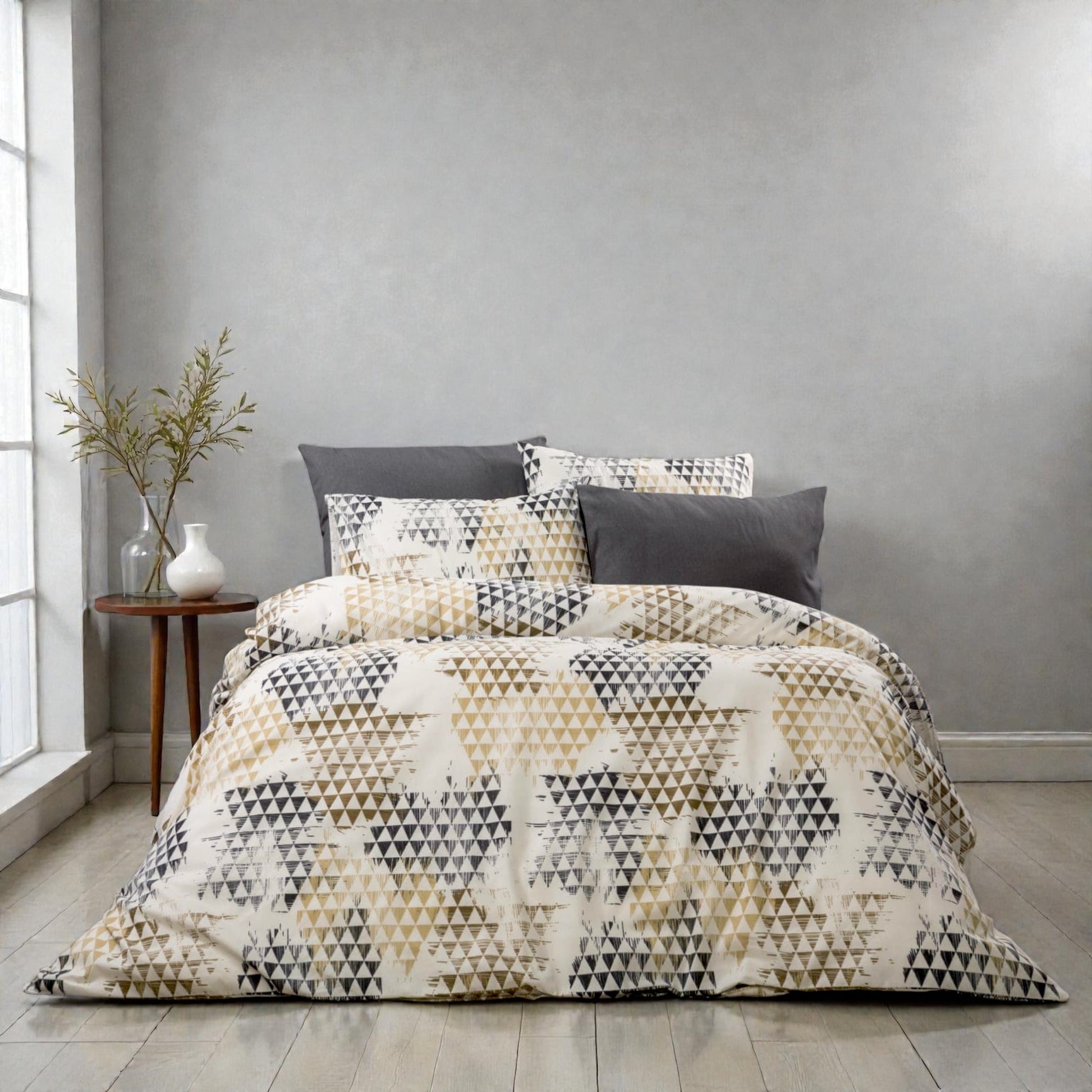 Bračna posteljina Geometrija Siva-Bež