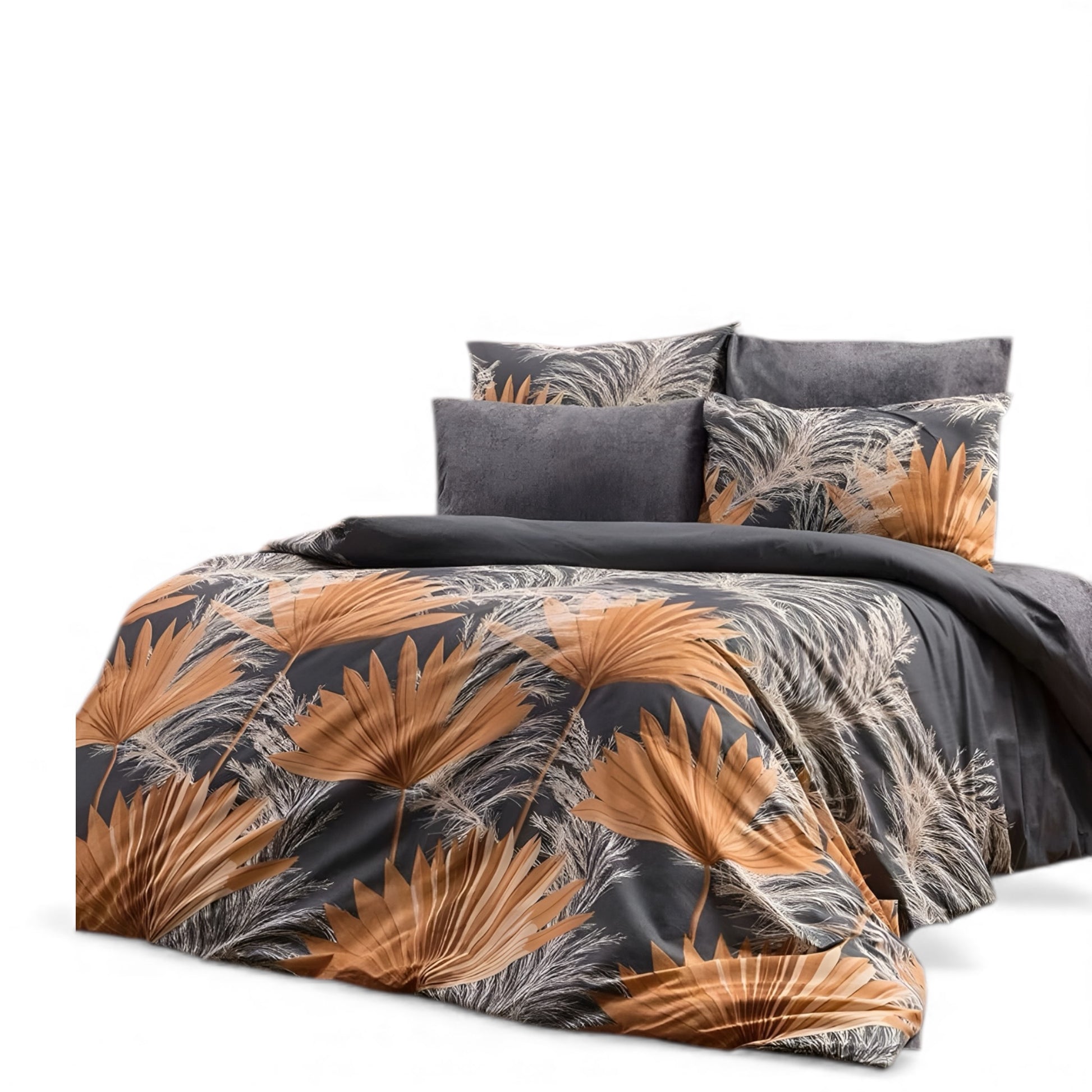 Bračna posteljina Tropski Listovi (antracit čaršav)